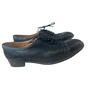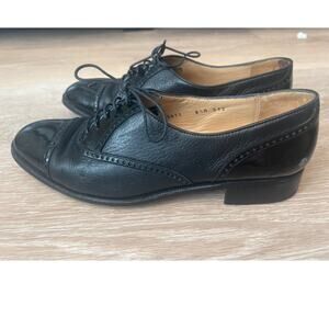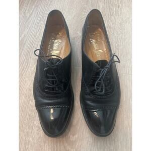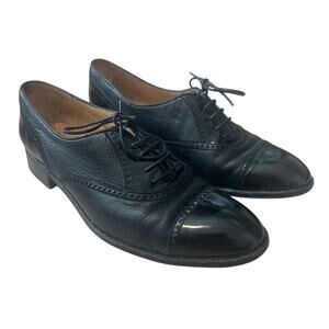 Gravati Neiman Marcus Womens Size 8.5 M Oxford Patent Cap Toe Black Leather Shoe