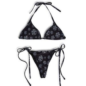 Under moonlight or amidst sunlit sands, this pentagram-patterned bikini unveils your gothic flair.