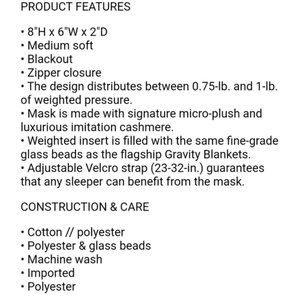 Grey 1 lb weighted sleep mask by Gravity. Never opened.