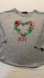 This gray top features a festive heart design embellished with Christmas-themed elements and the word 'JOY' in red. The 3/4 sleeves and boxy fit offer a comfortable and stylish look, perfect for casual occasions. NWOT #1396
