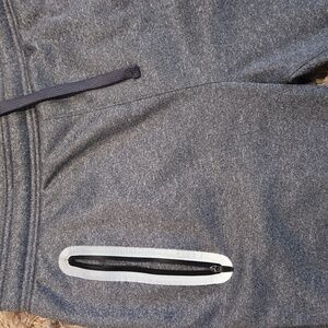 Comfortable and stylish unisex Athletic pants perfect for everyday wear. Gray with reflective pocket contours in front. Ankle zips. Back pocket.