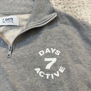 Stylish gray half-zip sweatshirt with '7 Days Active' logo. Perfect for casual wear.