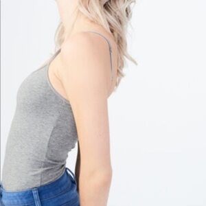 Elevate your casual wardrobe with this chic gray spaghetti strap top. Perfect for layering or wearing on its own, this versatile piece is a must-have for any fashion-forward wardrobe.