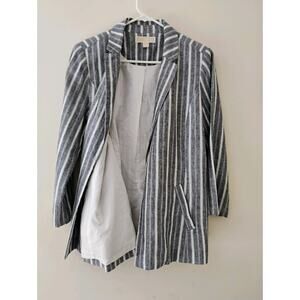 Gray And White Striped Linen Michael Kors Women's Blazer. Medium. Lightweight.