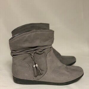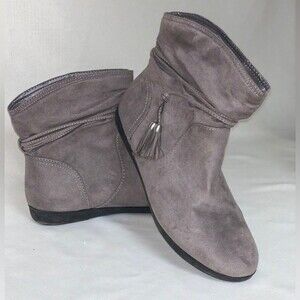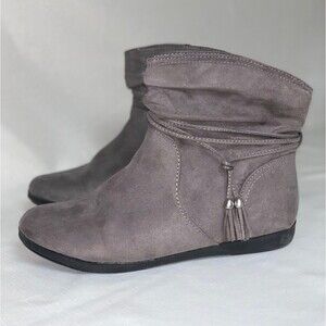 Gray Ankle Bootie Women's 8.5M AZ Kelly Suede Boot Shootie Boho Tassel Aztec