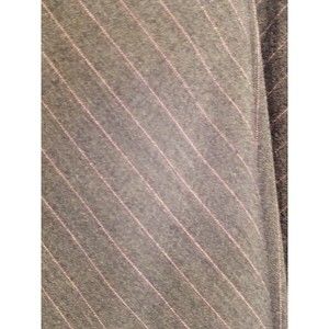 This listing is for a gray, Lane Bryant skirt featuring pink pin stripes and an asymmetrical or bias hem.