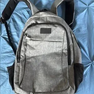 Stylish and versatile gray backpack perfect for everyday use. Features multiple compartments for easy organization. Built in laptop protection and charging station. Hidden pockets for security.