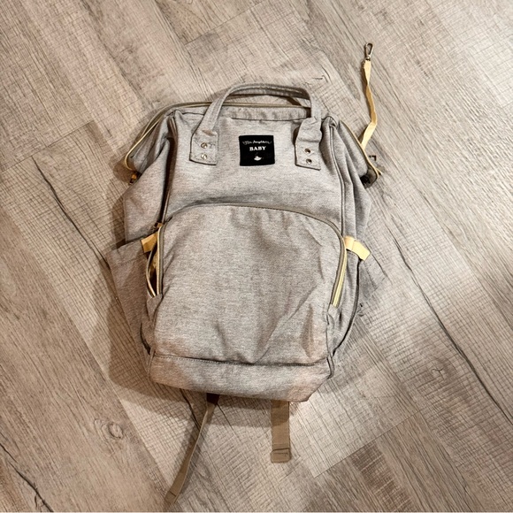 Grey and yellow Aden + Anais backpack #backpack Baby Daiper Back