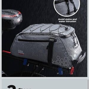 Enhance your cycling experience with the Bike Rear Rack Bag. This stylish gray bag offers ample storage and a reflective design for safe night riding.