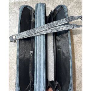 Gray & Black Patterned Zip-Around Wallet Multiple Compartments & Wrist Strap