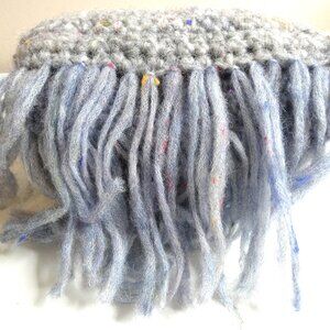 I hand crocheted this Light Gray and Blue scarf using an Alpaca, Nylon & Wool blend yarn. It is very unique and one of a kind.
