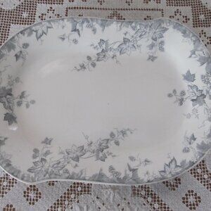 Gray Blue Transferware Platter Antique Johnson Bros HOP Pattern Dinnerware