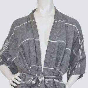 Gray Bohemian Coastal Striped Fringe Hem Belted Kimono Cardigan Size L