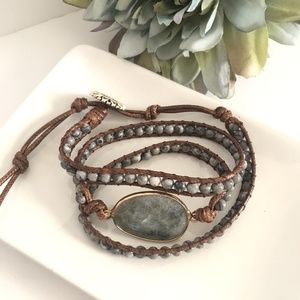 Gray Bohemian Stone Bead Wrap Bracelet NWT