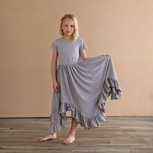 Gray Boho Dress - Long Ruffle Dress - High-low Hem Ruffle Dress - Gray Dress
