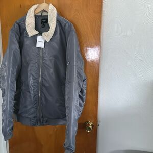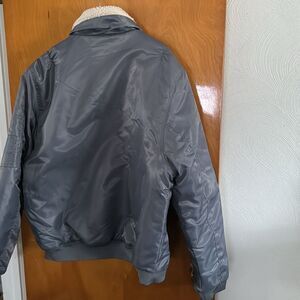 Gray Bomber Jacket Mens XXL Fleece Collar