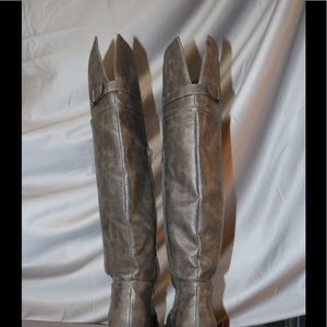 Super cute gray boots, very comfortable, worn twice! I'm 5'5" and these go to my knees.