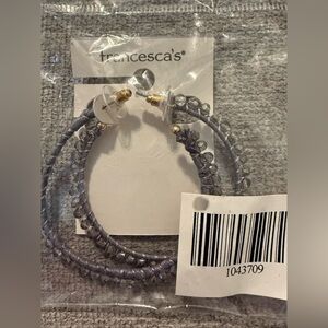 Discover the modern elegance of Francesca's Collections with these gray braided hoop earrings. Crafted with a unique interlaced pattern, these earrings offer a textured and dimensional look. Their substantial size and dark metallic finish add a contemporary edge to any ensemble, making them a standout accessory for any occasion.