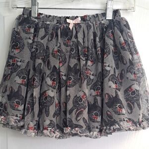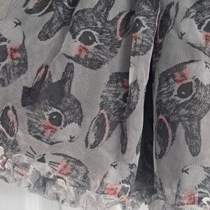 Embrace playful style with this chic gray skirt featuring a whimsical bunny rabbit print. Perfect for adding a fun touch to your wardrobe for Easter! Multiple sheer layers and lined in dark gray. By H&M kids. Girls size 7-8 years.