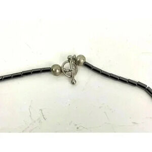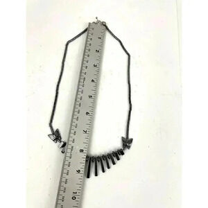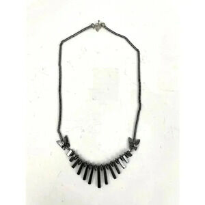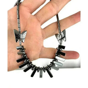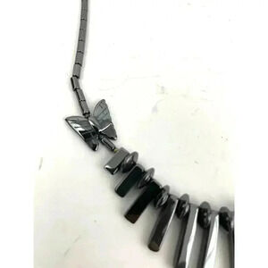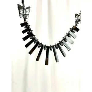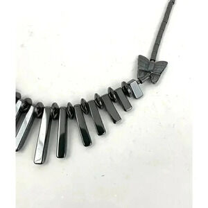 Gray Butterfly Beaded Hematite Stone Graduated Fan Sticks Collar Necklace 16"