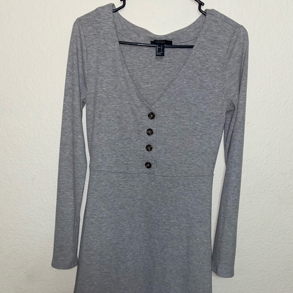 Wore this for my gender reveal party. Cute length. Above the knees. Long sleeve. Super cute & comfortable all in all.