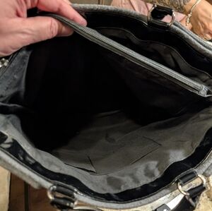 Stylish gray women's Branciano tote bag with button accents. Perfect for any occasion.