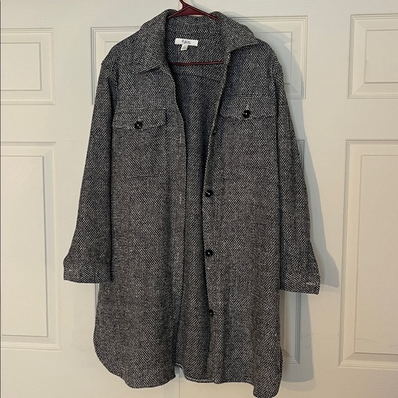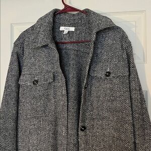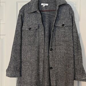 Stylish gray button-up coat with a classic design. Perfect for layering. Size Large. Looks great on, nice cover-up/layering
