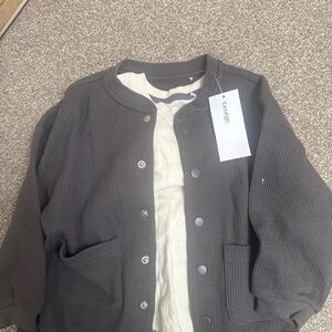 Stylish gray button-up jacket with front pockets. Perfect for layering.