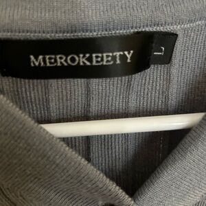 Stylish gray ribbed sweater with button-up front. Perfect for layering.