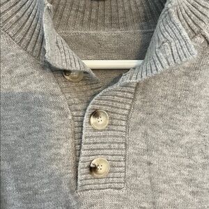 Stylish gray sweater with button-up collar. Perfect for casual wear.