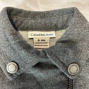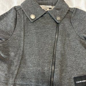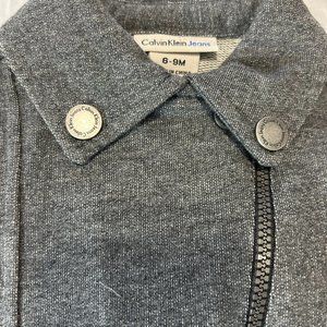 Calvin Klein Jeans Baby Jacket. Long Sleeves Zip front. NWT: originally a 3 piece set, but only the jacket for sale. 6-9 month size. Laying flat measures approximately 9" pit to pit, 9" shoulder to hem and sleeves 10".