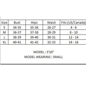 Model is 5'7" - Bust 32C - Waist 24" - Hips 34" and wearing a Small