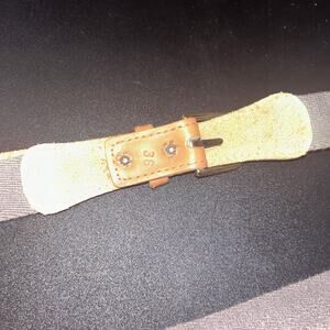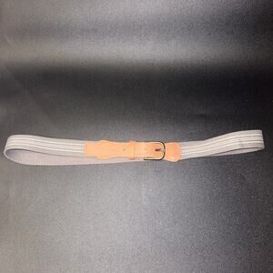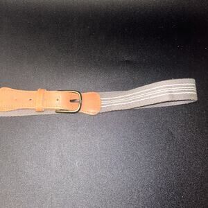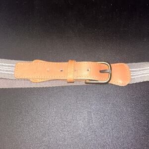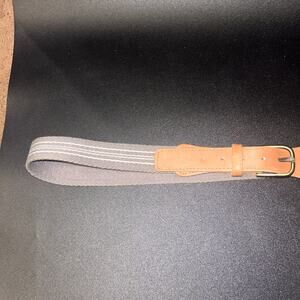 Gray Canvas Brown Genuine Leather Adjustable Belt Men's Size 36