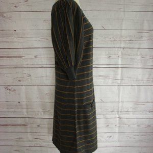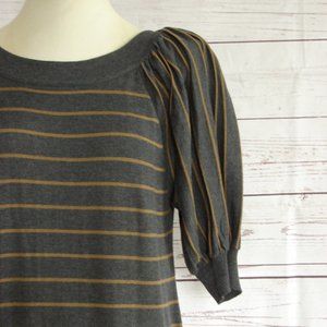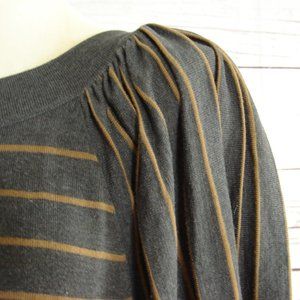 Gray Caramel Stripe Pleated Sleeve Sweater Dress L