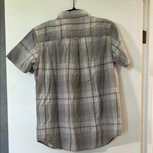 This gray casual button down shirt features a classic plaid pattern, offering a versatile and timeless look. Made from lightweight fabric, it's perfect for warm weather and casual outings. The short sleeves and traditional fit ensure comfort and style.