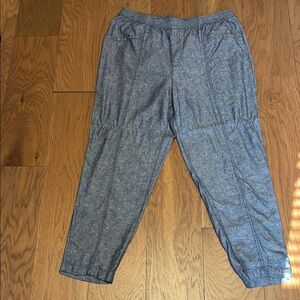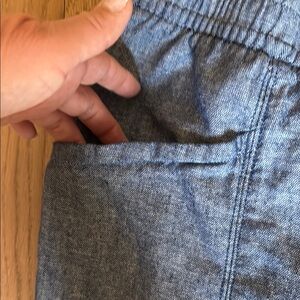 Comfortable casual pants. Never worn. My intention was to follow them up for capri pants but they got lost in my closet (as seen by the hanger marks). Perfect for spring. Elastics tie waist. Smoke free home.