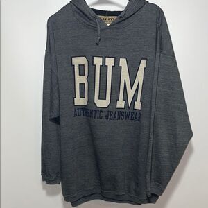 This gray sweatshirt features a bold 'BUM' text on the front, offering a relaxed and comfortable fit. Made from a soft cotton-blend material, it is perfect for casual wear. The vintage appearance adds a touch of style to your everyday look.
