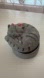 Charming gray cat figurine adorned with a pink bow, music box perfect for cat lovers.