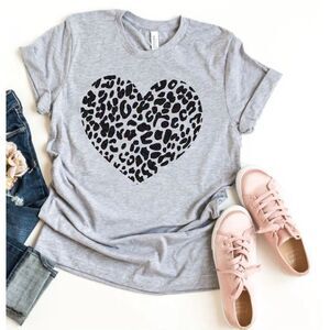 Ladies super cute gray with black and white cheetah patterned heart graphic short sleeve tshirt by T-Shirt. Excellent condition. Ladies size 1XL by Chic Me.
