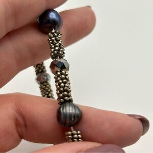Gray Circled Baroque Pearl Stretch Bracelet with Silver Tone Sun Good Luck Charm