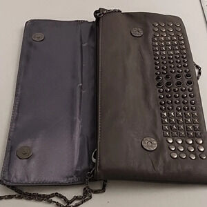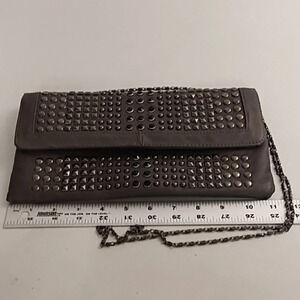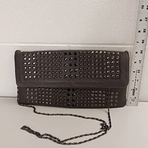 Gray Clutch Crossbody bag Gunmetal Studs Black Faceted Stones Removable Chain