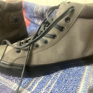 I have a like new pair of Chuck Taylor/ Converse All Star high tops. The color is a lightish gray I think they call it Charcoal Gray on this pair with blue accents which they call blue lagoon. Size is US Men 10.5/WM 12.5. I wore these shoes out maybe twice and have owned them a couple years. I own alot of shoes and this was just a pair I never wore much. This is a nice like new pair of shoes. I bought these shoes at a Converse store for around $80 plus tax.