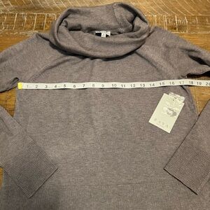 This gray sweater features a cozy cowl neckline and a relaxed fit, perfect for layering. Made from a soft, medium-weight knit, it offers a comfortable and stylish look for any occasion.