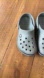 gray Crocs clogs with a classic design. Perfect for casual wear.