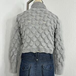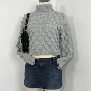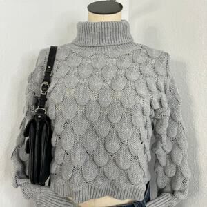 Gray Cropped Turtleneck Open Textured Knit Sweater Size Small