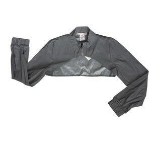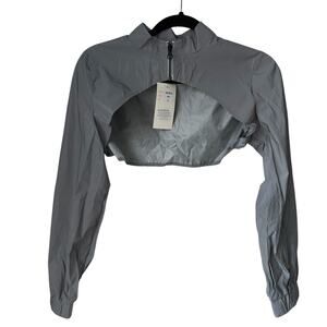Gray Cropped Windbreaker Jacket Sz Small Reflective Fabric Bolero Style Festival