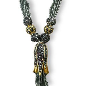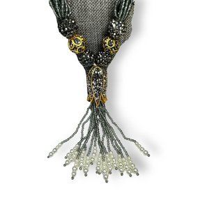 Gray Crystal Multi-Strand Faux Pearl Tassel Necklace 40” Adjustable