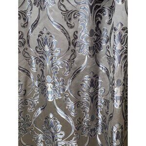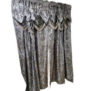 Gray Curtains Brocade Jacquard Two Panels Valance & Tassels 54" x 84"