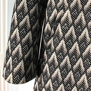 Gently used. Collarless long coat. Diamond woven material fully lined.
