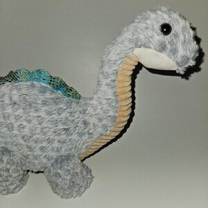 Gray Dinosaur Plush 11" Stuffed Animal Toy Blue Green Tan Ribbed Long Neck